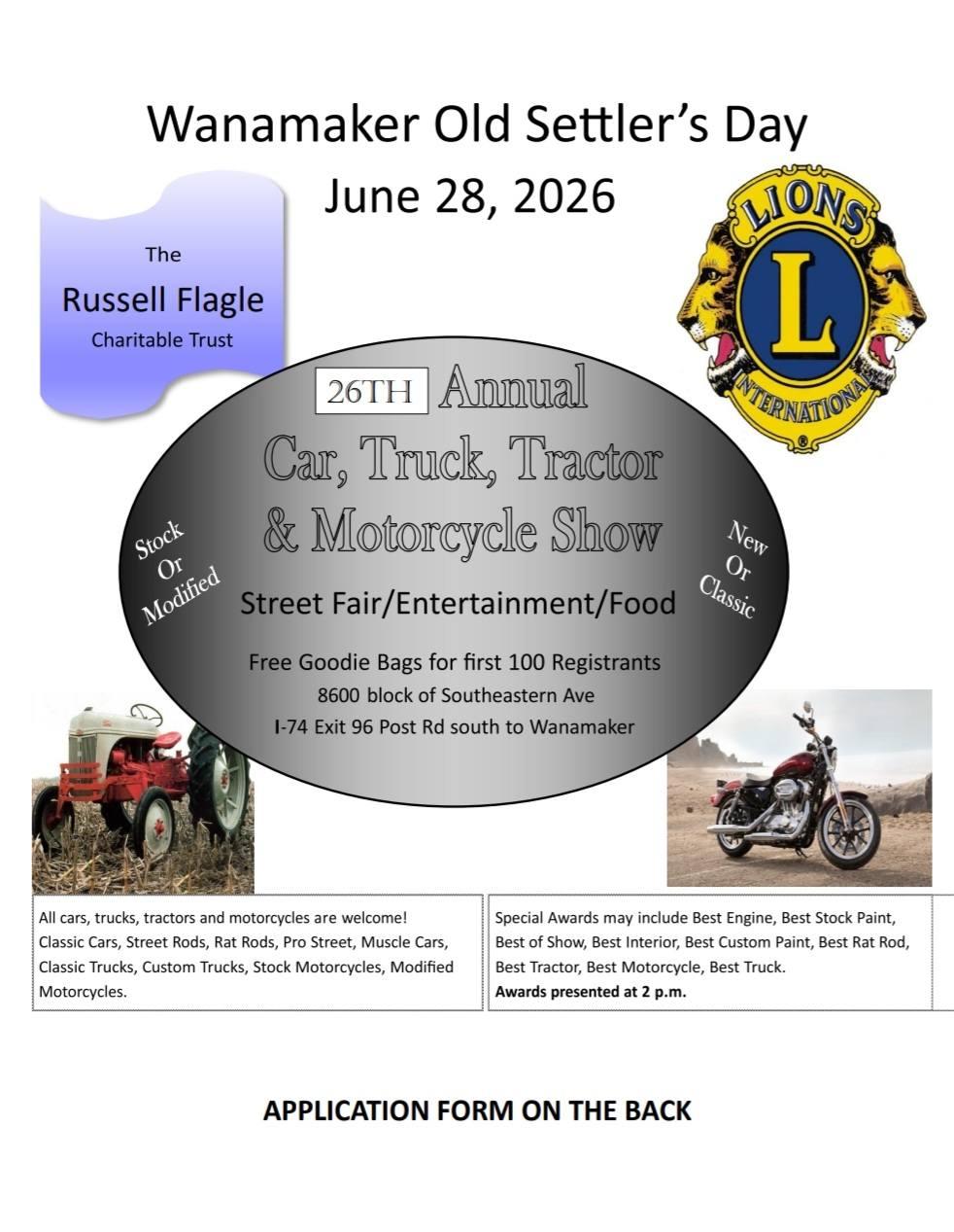 Alright everyone, the final details for the 2026 Old Settlers Day Street Fair and Car Show are all together. Visit our Facebook page for the information, registrations and sponsorship information. Contact us if you need any assistance and can't wait to see all of you June 28th!