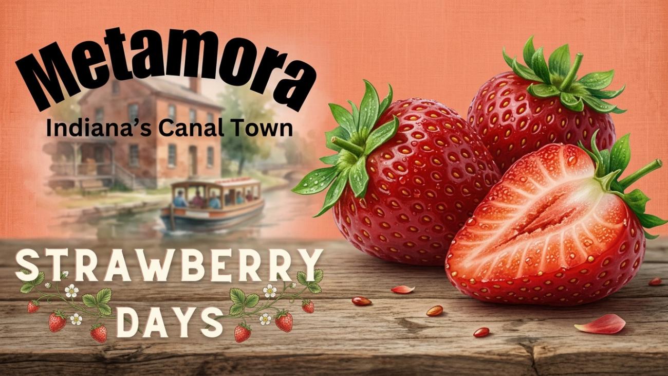 Plan your weekend trip to Historic Metamora, Indiana for our yearly Strawberry Days! Fresh cut strawberries as well as strawberry treats from many of our shops! Live music and a fun time for all! Saturday and Sunday 10 am to 5 pm.