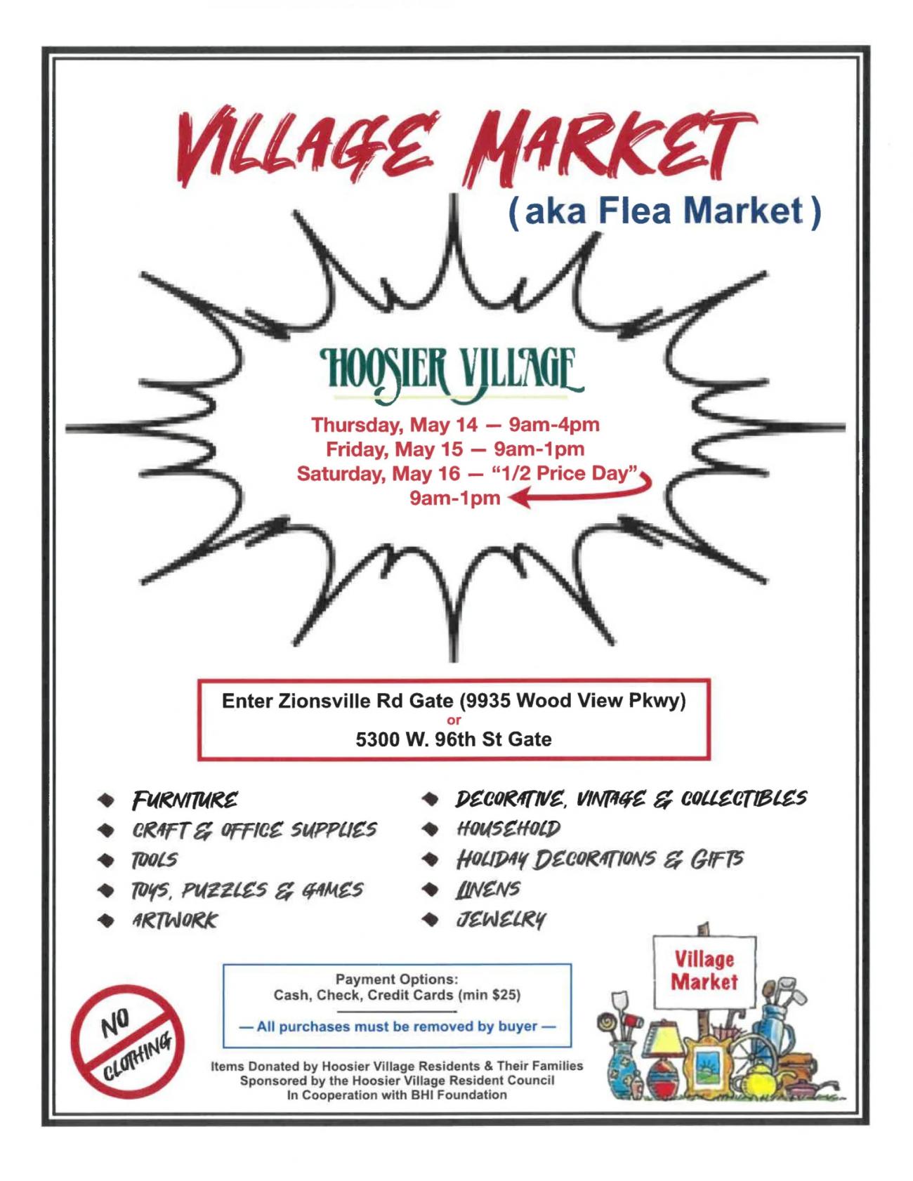 The residents of Hoosier Village, a nonprofit life plan community in Zionsville, will be hosting their annual flea market to raise funds for a good cause Thursday, May 14, through Saturday, May 16. The residents and volunteers wanted to organize an event that would bring their community together to help others in need. Open to the public.