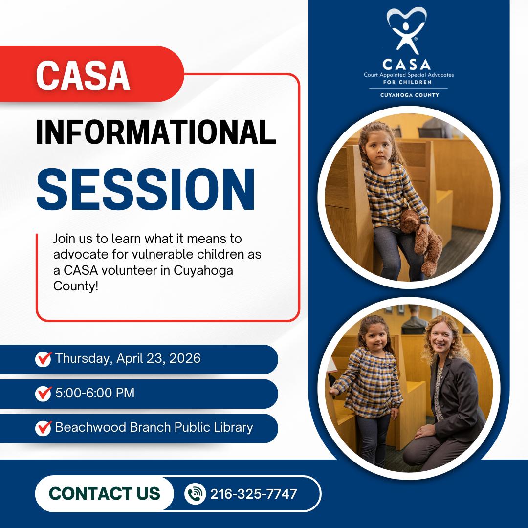 A Court Appointed Special Advocate (CASA) is a trained community volunteer appointed by the Juvenile Court to represent the best interests of a child who has been abused or neglected. Join us for this one hour session to learn what it means to be a CASA volunteer in our community.