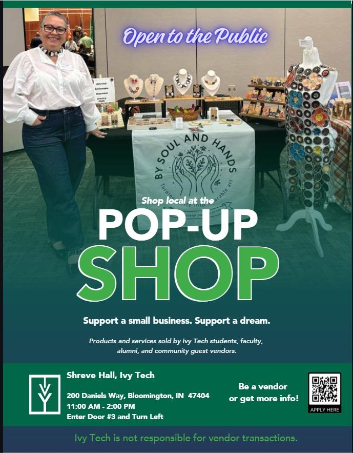 Come join us at Ivy Tech in Bloomington and see all the vendors selling crafts, books, food, and more.