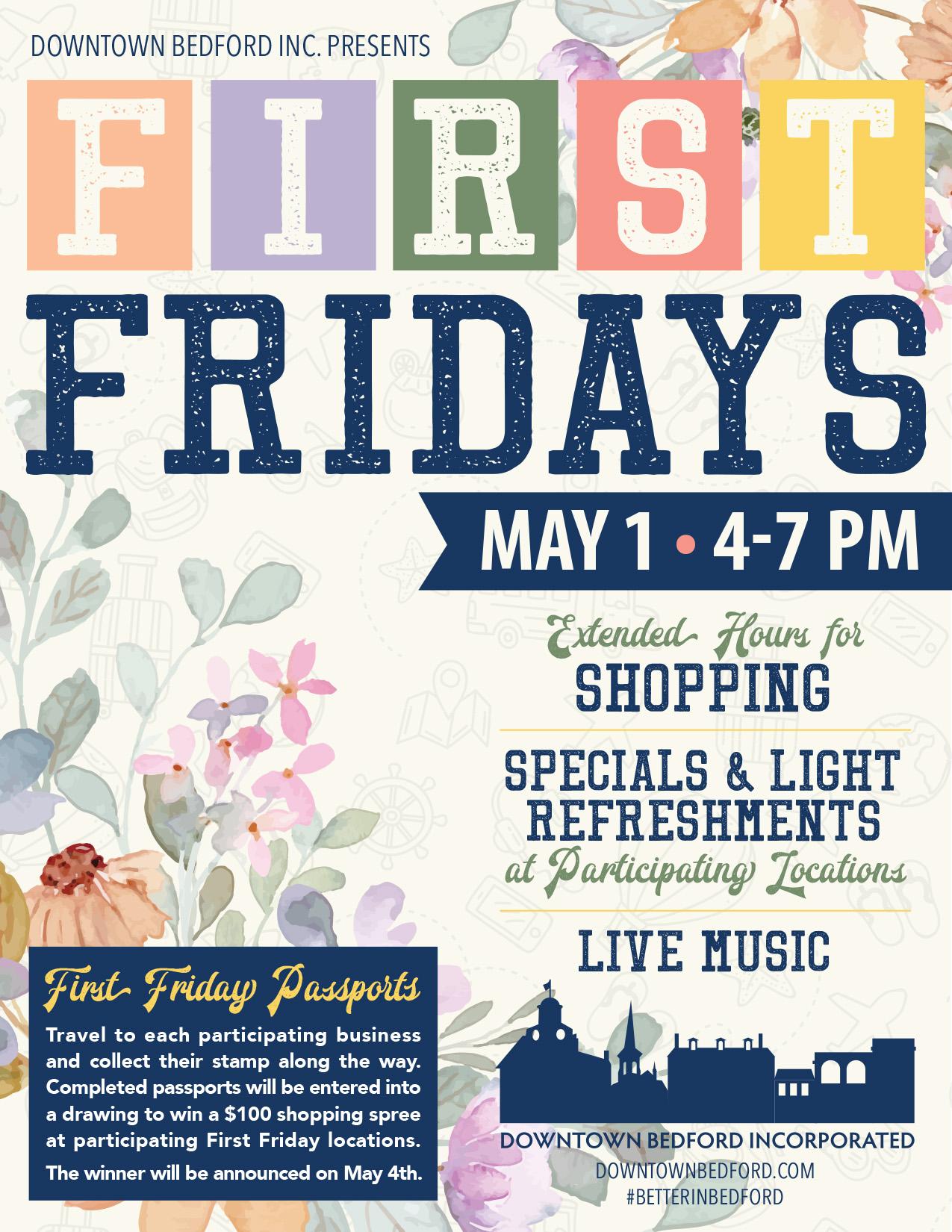 Join us for First Fridays, a fun-filled monthly celebration in Downtown Bedford held on the first Friday of May! From 4โ7 PM, stroll through our charming downtown and enjoy: