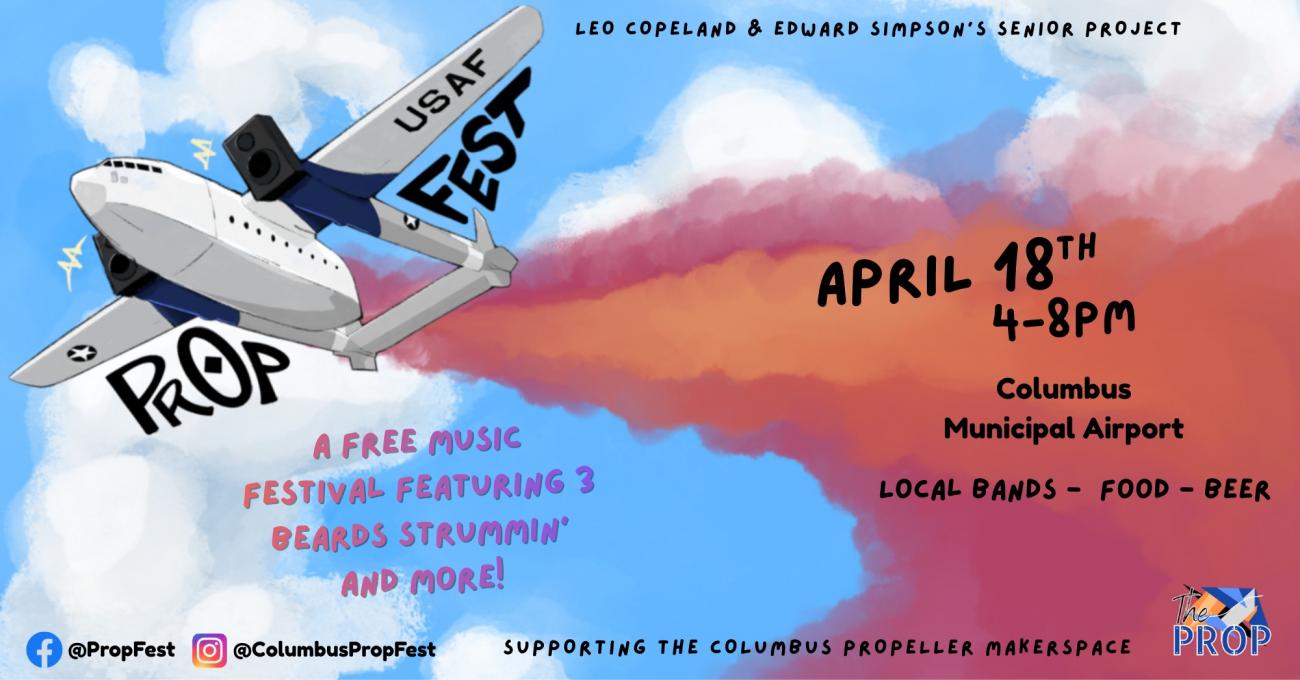 Come join us for a free music festival supporting Columbus Propeller Makerspace! As part of their senior project, local high school seniors Leo Copeland and Edward Simpson created PropFest to help raise awareness and support for Propeller.