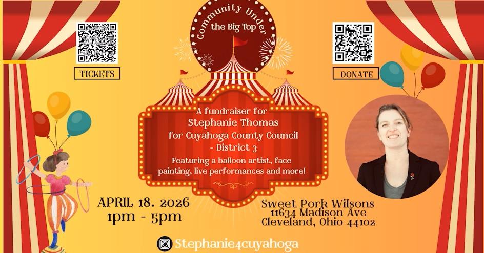 Join the Community under the Big Top for a kid friendly event featuring a balloon artist, face painting, live performances and more! It's an afternoon that brings neighbors, families, and supporters together to lift up Stephanie K. Thomas’s campaign for transparent, accountable county government 🎪.