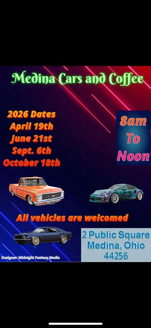 Over 150 show cars are on display around the Square with music by DJ Rich Hillrich. Overflow lot for Show Cars now available at Medina City Parking Lot # 3 (enter at W. Liberty Street or W. Washington Street).