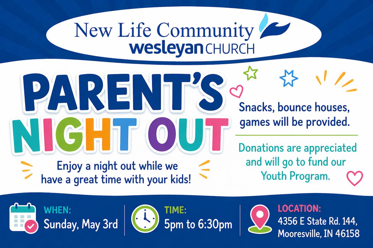 Parent's Night Out. The youth group (teens) will be hosting a kid's event (snacks, games, bounce houses, etc.) as a fundraiser for the teens.