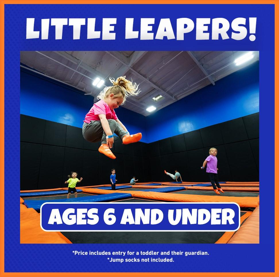 Little Leapers is a special time reserved for our youngest Guests (6 and under) to explore, learn, and grow as they play. With a mix of structured activities and free play, you will love watching your child bounce, climb and laugh while developing important social skills like sharing and teamwork.