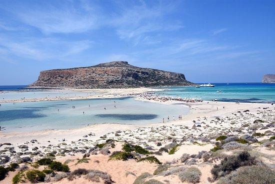 The bay of Balos with the lagoon of Gramvousa, along with the island of Elafonisi and the Samaria Gorge, are considered one of the main attractions of the nature of Western Crete. The bays were created by the gradual tectonic elevation of the island in the west and the resulting land connection of Crete to the former offshore island of today's Cape Tigani. Under the protection of this land bridge to the open sea, the lagoon could form to the east of it due to flooding.