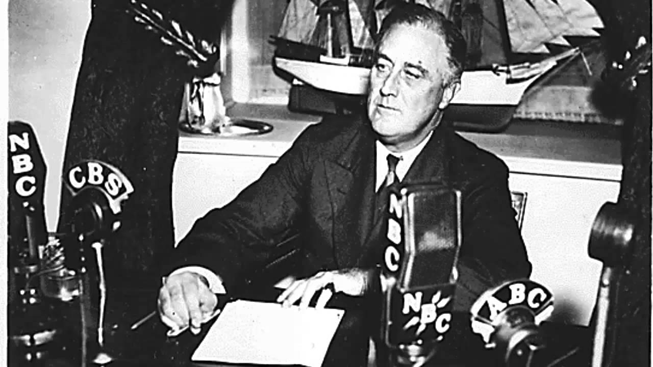 On March 12, 1933, eight days after his inauguration, President Franklin D. Roosevelt gives his first national radio address—or “fireside chat”—broadcast directly from the White House.
