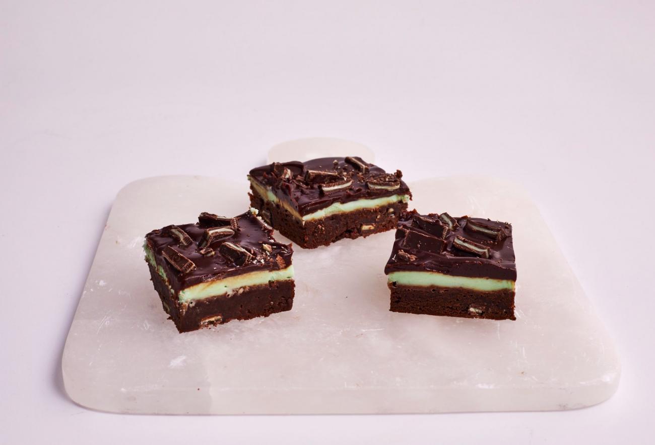 3 Stir chopped Andes mint pieces into batter. Pour batter into lightly greased 13- x 9-inch baking dish, and bake in preheated oven until a toothpick inserted in center comes out clean, about 20 minutes. Cool in pan on wire rack 20 minutes.