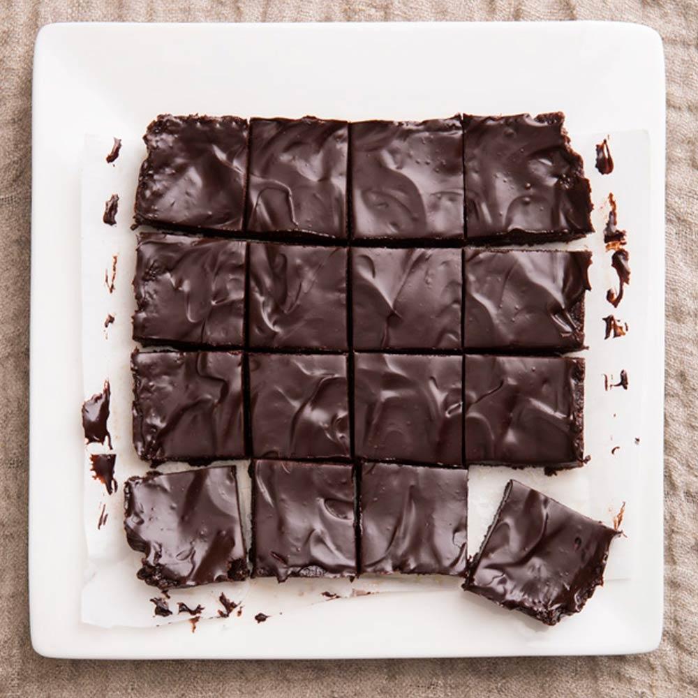 3 In a medium mixing bowl, combine remaining 1/4 cup cacao powder, remaining 1/2 tsp. vanilla, maple syrup and oil. Stir until mixture forms a paste (this is the frosting). Spread paste evenly over dough in baking dish. Refrigerate brownies for at least 2 hours to set, then cut into squares. Refrigerate any leftovers in a covered container for up to 2 weeks, or freeze for up to 2 months.