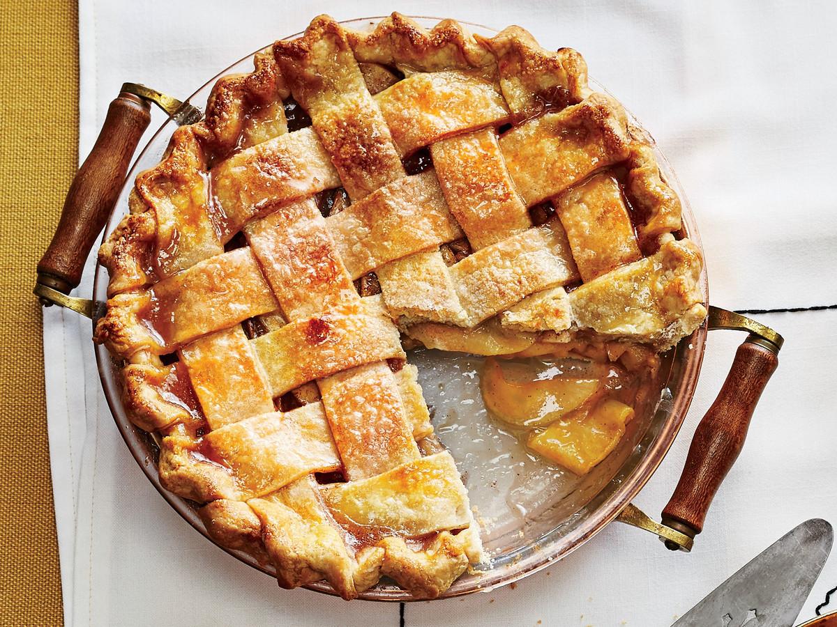 5 Bake in preheated oven 15 minutes. Reduce oven temperature to 350°F. Loosely cover pie with aluminum foil. Bake at 350°F until crust is golden brown, apples are tender, and juices are bubbly, 1 hour to 1 hour and 10 minutes, removing foil for the last 10 minutes of baking to finish browning crust. Transfer pie to a wire rack, and cool completely, about 3 hours. Serve pie with Caramel Sauce and, if desired, ice cream.