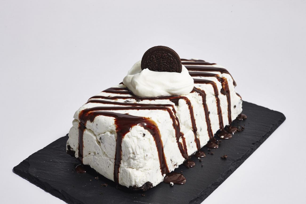 2 Line an 8 1/2 x 4 1/2 inch loaf pan with plastic wrap. Pour Oreo cream mixture into prepared pan, and spread in an even layer. Place Oreo Thins in a food processor, and process until finely ground. Add butter and process until combined. Sprinkle crumb mixture evenly over Oreo cream mixture; fold plastic wrap over cake, and freeze at least 8 hours.