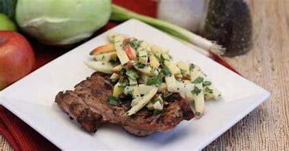 Whisk together mayonnaise, vinegar, poppy seeds, and hot sauce in a large bowl; season with remaining 1/2 teaspoon salt and remaining 1/4 teaspoon pepper. Add apple sticks, celery, celery leaves, parsley, and chives; toss to combine. Serve immediately with pork chops.