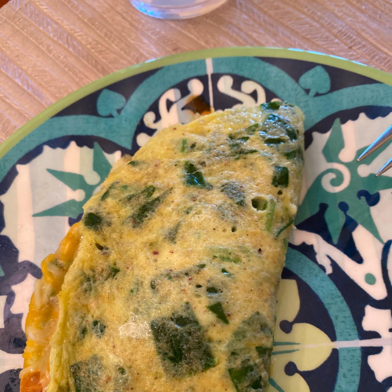 In a small skillet coated with cooking spray over medium heat, cook the egg mixture about 3 minutes, until partially set. Flip with a spatula, and continue cooking 2 to 3 minutes. Reduce heat to low, and continue cooking 2 to 3 minutes, or to desired doneness.