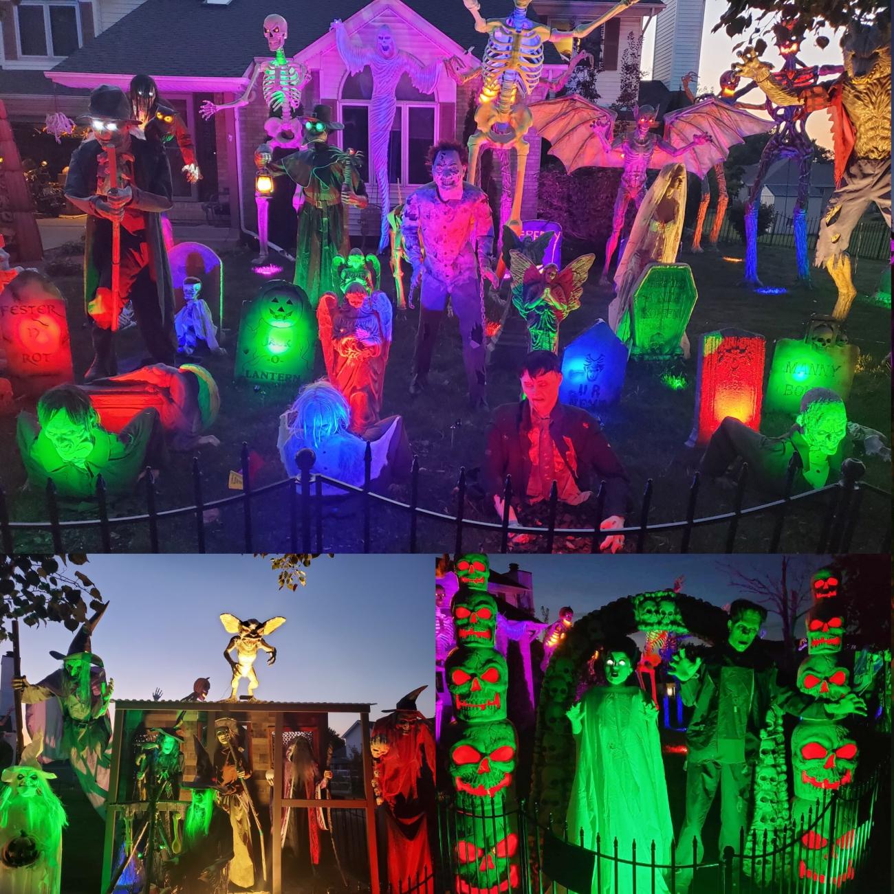 βΌ Spectacular family-friendly decorated home with 12 ft skeletons with sound & lighting, 9 1/2 werewolf with sound, 12 ft witch with sound, sister witch with sound, 8 ft spider with lights & webbing, 8 ft pumpkin stacks, fog, and grim reaper with sound & lighting. Wizards, pumpkin twins, tombstones, Annabelle, and many more pumpkins.