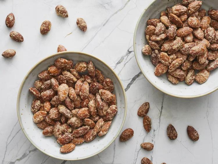 Bake in the preheated oven, stirring occasionally, until golden, about 1 hour. Allow to cool, then store nuts in an airtight container.