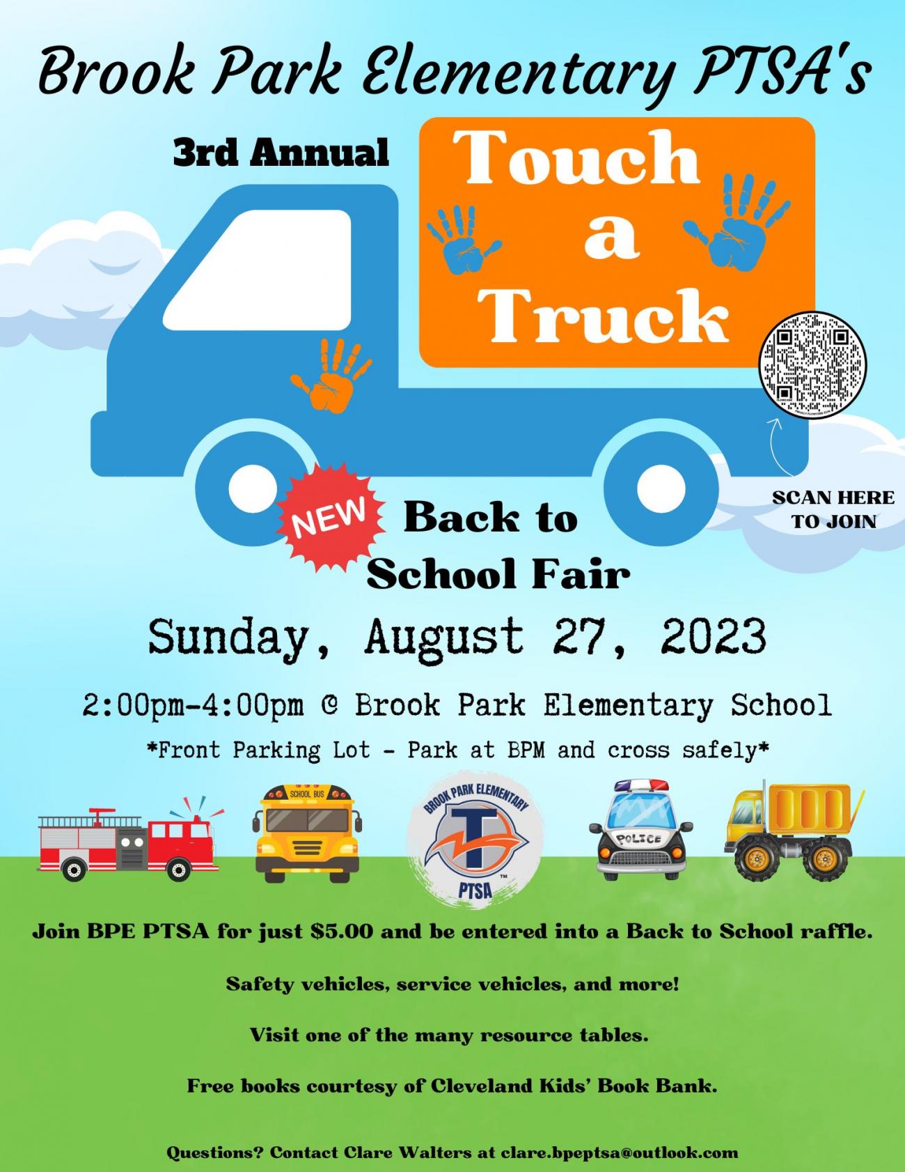 Join BPE PTSA for our 3rd Annual Touch-a-Truck event, plus NEW Back to School Fair!