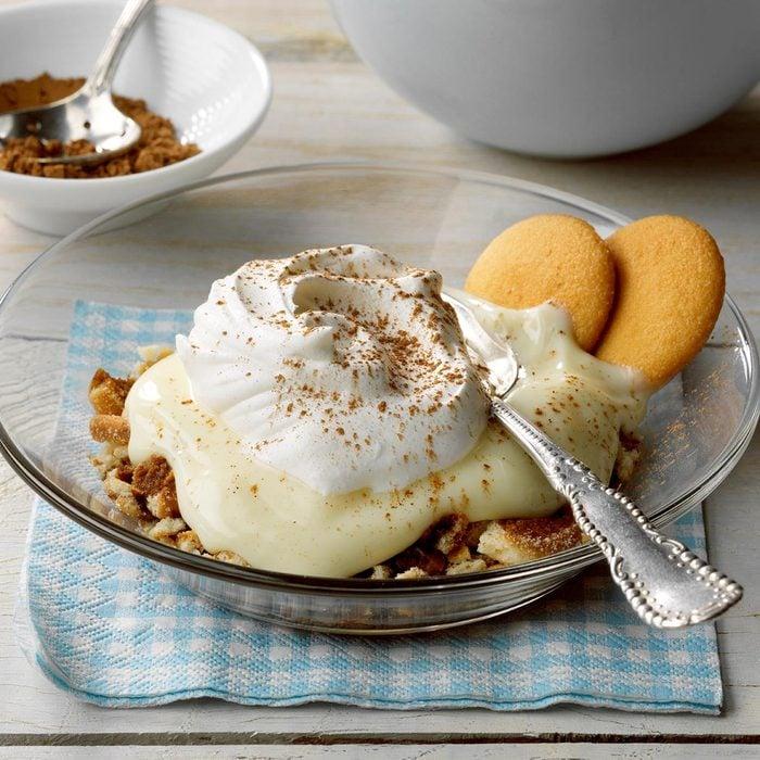 Set aside 4 vanilla wafers; coarsely crush remaining wafers. Divide wafer crumbs between 2 dessert dishes.