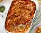 Spoon half the pasta mixture into a greased shallow 3-qt. baking dish; layer with cheese mixture and remaining pasta mixture.