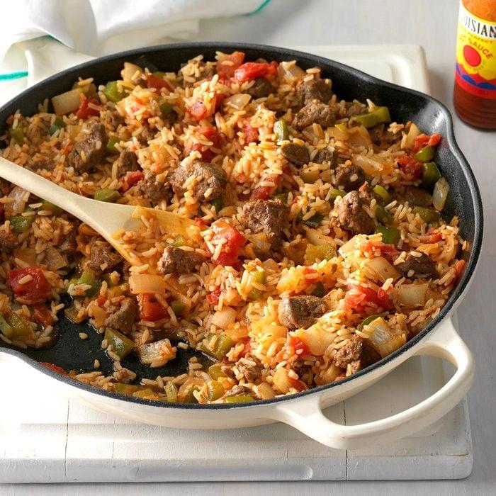 Health Tip: Replace half the sausage with lean ground turkey and use unsalted chicken broth to save almost 700mg sodium per serving.