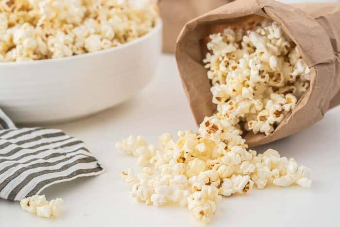 Give the pot a shake for 3-4 seconds, (holding it to keep the lid on!) then let sit for 3-4 seconds, repeat this continuously until the popping begins to slow down. Once it's almost done popping, remove the lid and shake the salt over the popcorn. Give it another shake to mix it in then remove from heat and uncover.