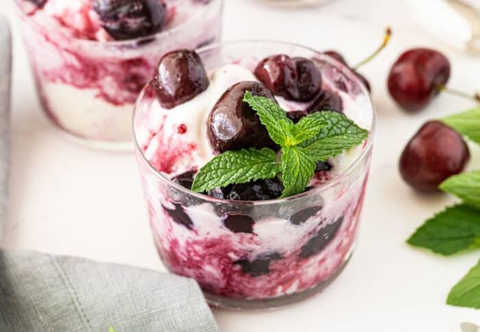 Prepare your bowls of ice cream first then place in the freezer. Once the cherries are done, they have to be spooned over the ice cream immediately.