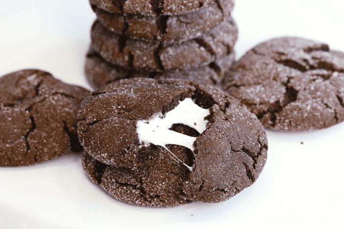 Bake for 10-12 minutes until the edges of the cookies are baked and set. Make sure the marshmallow doesn't bubble out of the cookies too much, if they start to explode remove them from the oven.