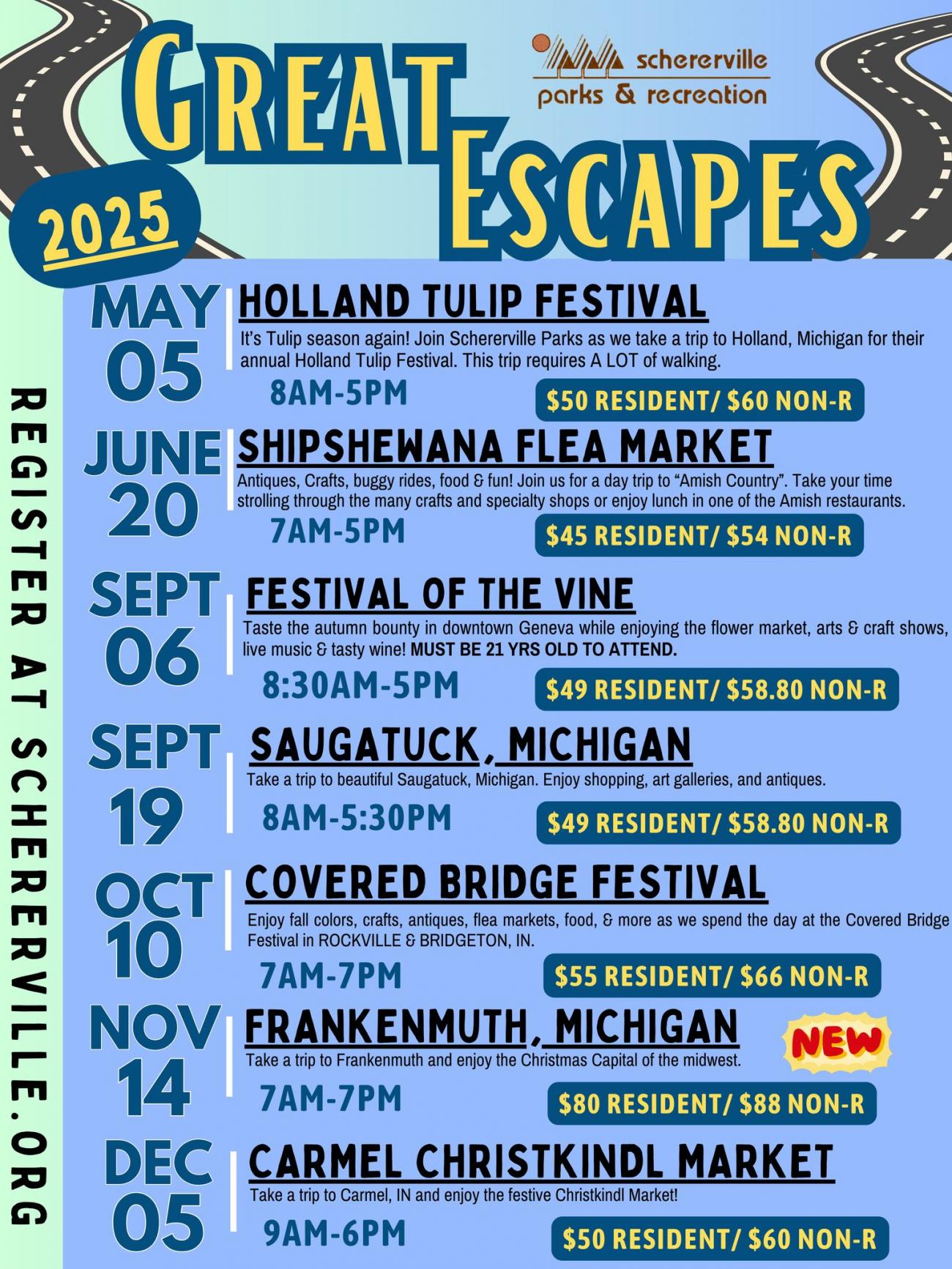 More About π Discover New Adventures: Great Escapes Bus Trips with Schererville Parks & Recreation π