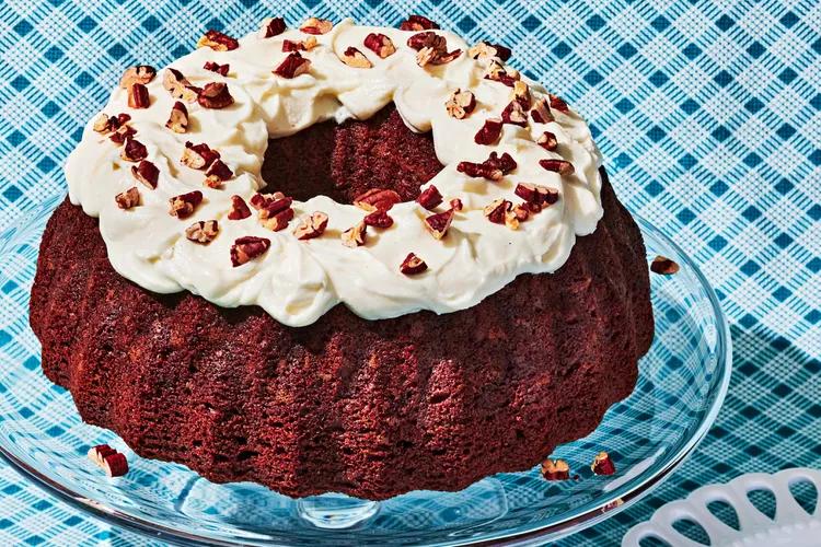 Beat cream cheese and butter until creamy. Beat in powdered sugar and vanilla until smooth. Spread on cooled cake. Sprinkle with nuts, if desired.