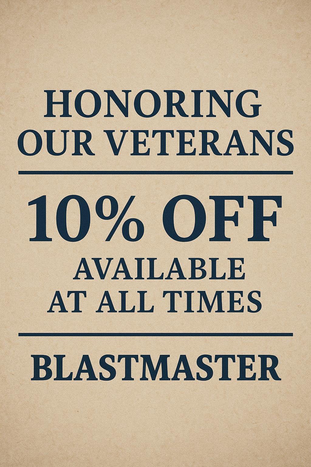 Thank You for Your Service! 10% Veteran Discount Available Anytime at Blastmaster.