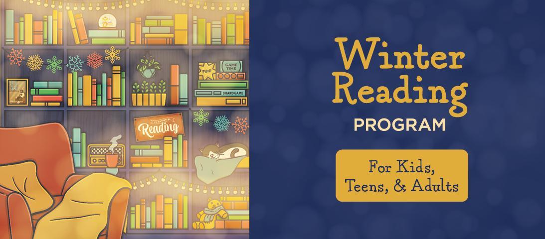 The Winter Reading Program for kids, teens, and adults runs through January 31, 2027. You can read or listen to any books you choose and earn a chance for prizes.
