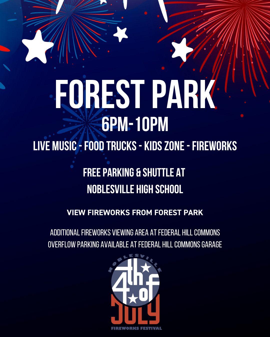 ⚪The FREE Fireworks Festival will take place at Forest Park from 6pm to 10pm. The event will include traditional park amenities such as playgrounds, shelters and shade; along with festival items like a bungee jump course, an axe throwing trailer, rock wall, inflatables, trackless train and a kids area. An adult area will include a beer garden and games. Live music on the main stage.