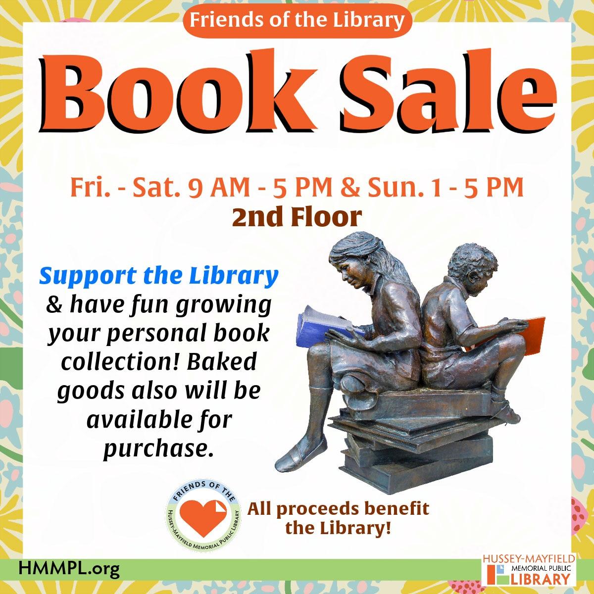The Friends of the Library book sale runs during the library hours Friday, October 2, through Sunday, October 4, 2026. Find books and other materials for your personal collection!