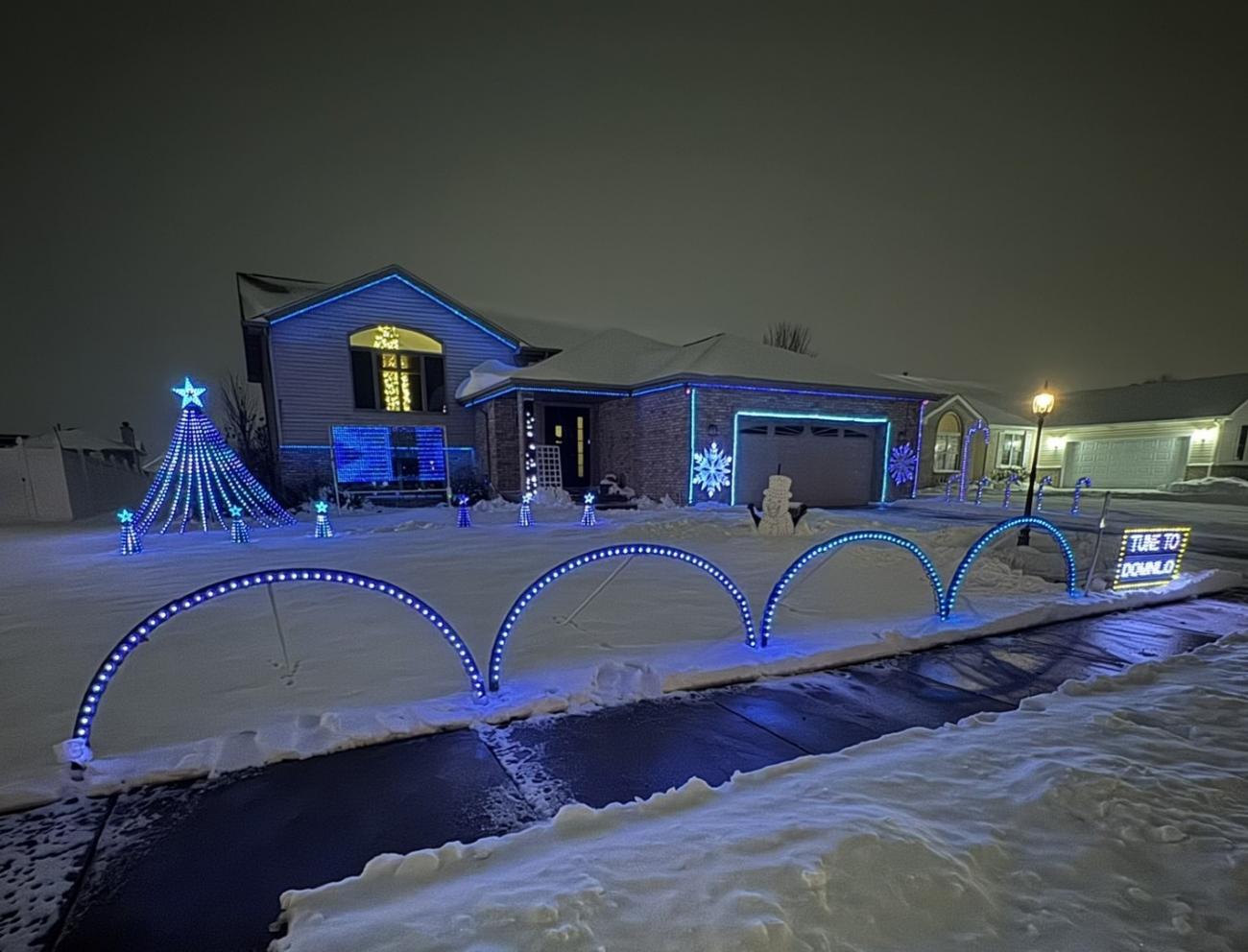 This is our first year featuring nearly 5,000 LEDs and almost 30 minutes of synchronized light shows to Christmas hits and classics.