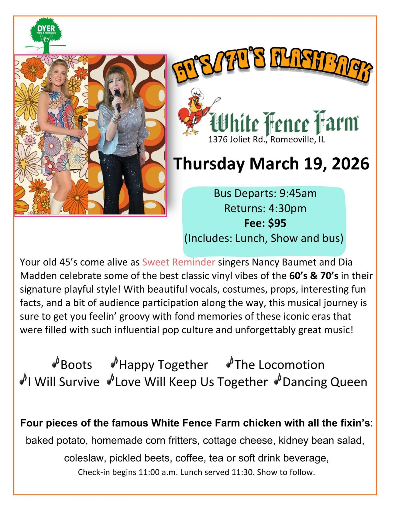 More About 60's/70's Flashback White Fence Farm Day Trip with Dyer Parks and Recreation π€π’