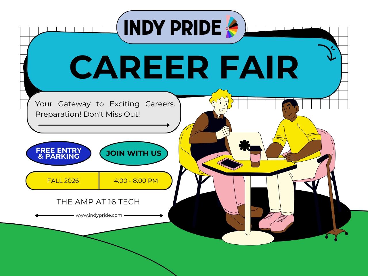 The Indy Pride Career Fair will take place on Saturday, September 26, 2026, from 4–8 PM at The AMP at 16 Tech. This free, community-wide event connects job seekers with employers who value diversity, inclusion, and belonging. Whether you’re looking for your first job, exploring new career paths, or seeking an employer that aligns with your values, the Career Fair offers an inviting and supportive space for all.