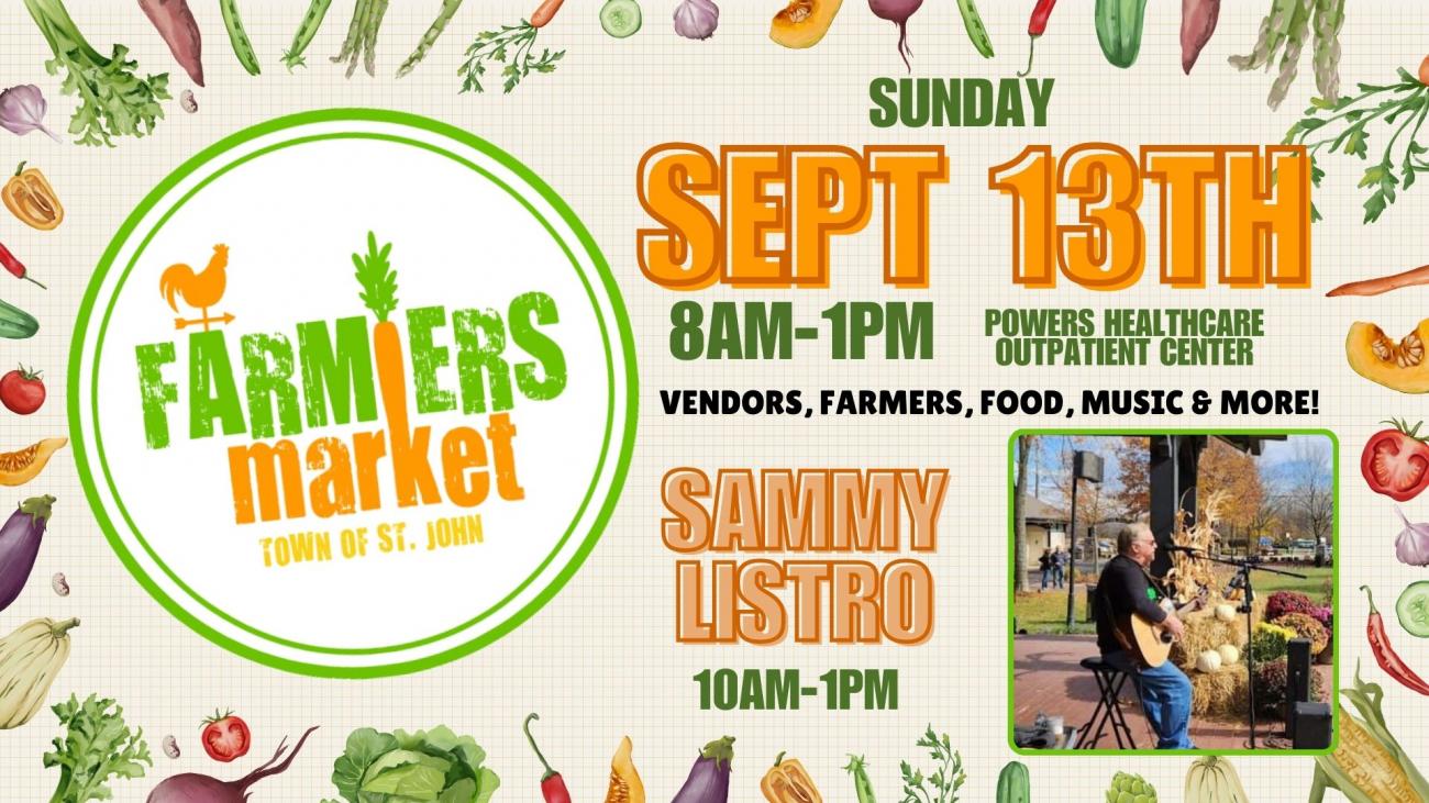 More About St. John Farmers Market featuring Live Music from Sammy Listro ๐ต๐จโ๐พ