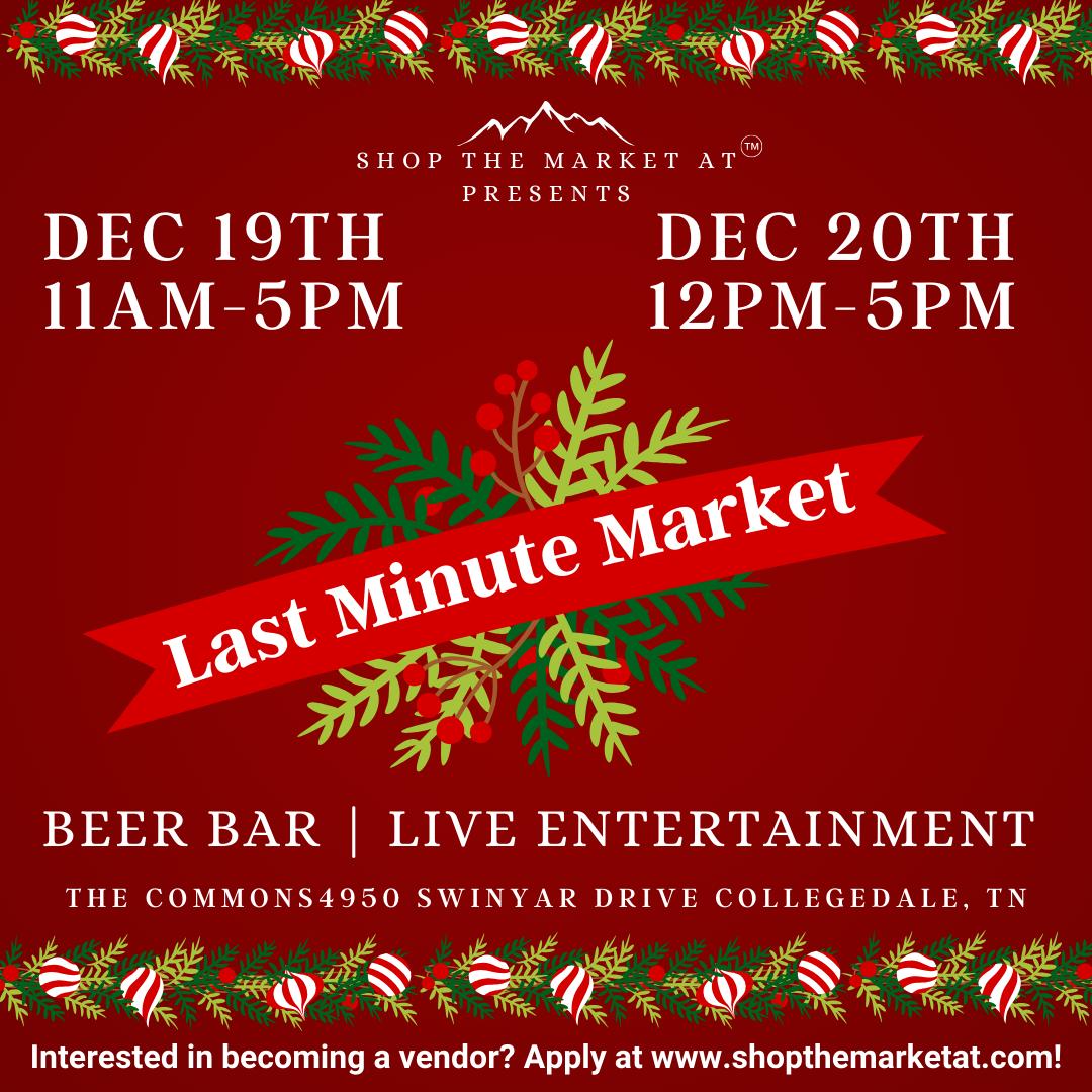 🎄Don't miss the Last Minute Market at The Commons in Collegedale on December 19th 11am-5pm and Sunday. December 20th 12pm-5pm. ✨Join us for a Christmas shopping extravaganza with a wide array of gifts and goodies to satisfy every shopper's needs. Explore festive stalls adorned with twinkling lights and garlands, showcasing handmade treasures from local artisans. 🎁 From charming home decor to delicious gourmet treats, find something for everyone on your list. With live music, delicious food trucks, and the cheerful buzz of holiday cheer, it's the perfect way to wrap up your holiday preparations in style.