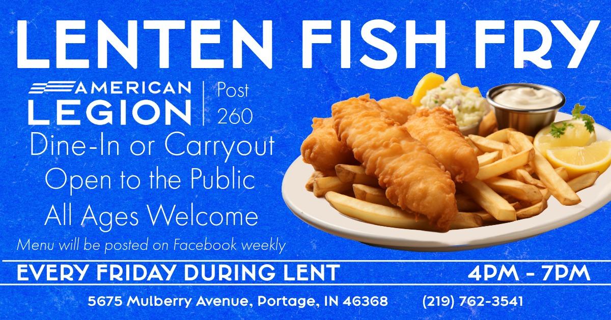 Join us every Friday during Lent for our classic Lenten Fish Fry at American Legion Post 260!