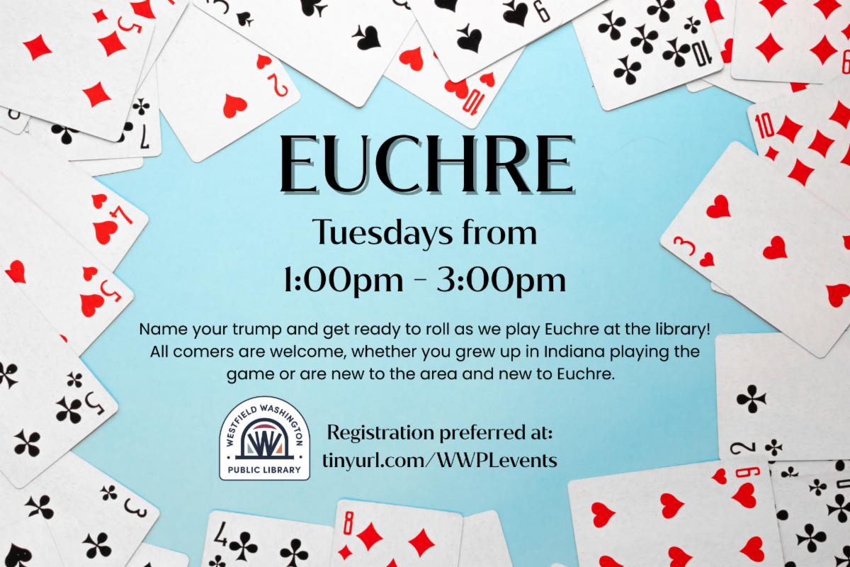 WWPL Euchre meets every Tuesday at 1:00pm. Check directly with the library regarding holiday closures.