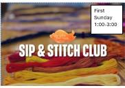 The Sip and Stitch club is open to fiber and textile makers, artists, and hobbyists. Whether you knit, embroider, crochet, weave, felt, quilt, cross stitch or something else -- all hooks and needles are welcome! We will meet the first Sunday of the month from 1-3 pm at The River House. Bring your current WIP, share ideas, ask questions and get to know other makers in a relaxed and welcoming atmosphere. The River House sells a variety of hot and cold beverages, as well as offering a seasonal menu. So you can grab your favorite beverage to sip while you stitch!