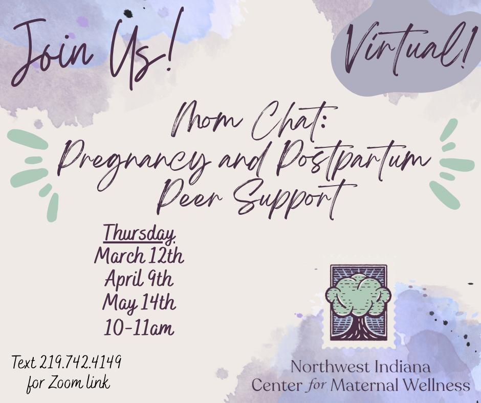 The Northwest Indiana Center for Maternal Wellness offers education, peer support and resources for mothers with Postpartum Depression and other Perinatal Mental Health Disorders. Our services include a warmline, individual and group peer support, classes, workshops, social events and more. We want you to know that we see you, we hear you and you are not alone. Reach out today and let's chat!