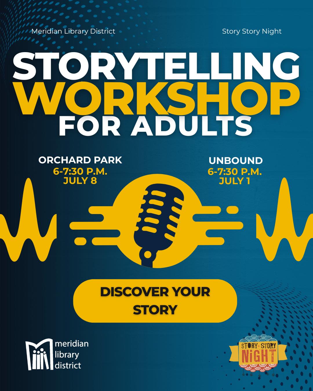 Join us at unBound as Story Story Night leads a workshop for adults. Learn how to tell your story in a way that hooks your audience. This is great whether you're telling your personal story or the story of your business.