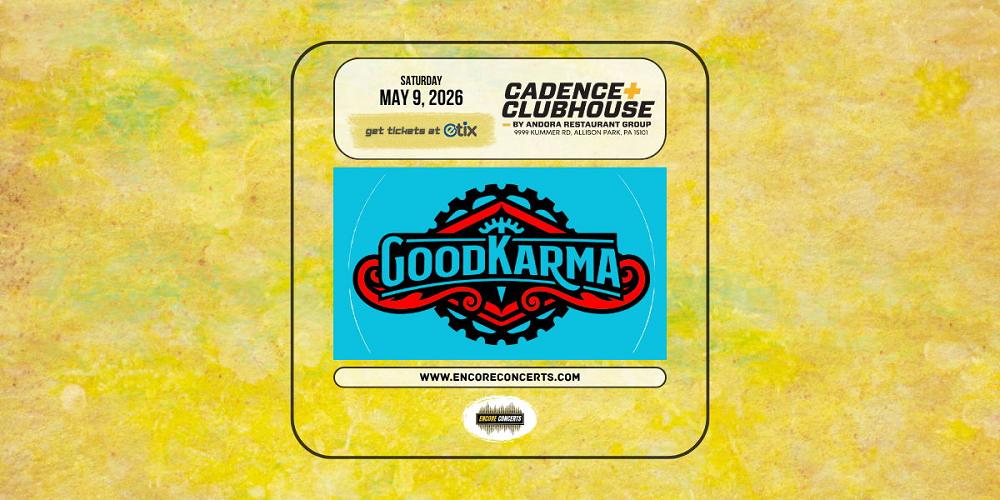 Cadence Clubhouse and Encore Concerts proudly present Good Karma Band - performing all your Classic Rock & Blues favorites - live in concert on Saturday, May 9, 2026. Event entry begins at 6:00 PM and the show starts at 7:00 PM. Advance tickets are available now at Etix.com or via the link on this listing. Any remaining tickets will be available for purchase at the door on the day of the show, starting at the time of entry. Cash and most electronic forms of payment are accepted at this venue. Seating is available on a first-come, first-served basis starting at the time of entry. No reservations will be accepted for this event. This event is open to all ages. Valid identification is required to purchase or consume alcohol. Free parking is available to attendees in the venue's parking lot. This event will be held indoors. All sales are final. No refunds, exchanges, or transfers unless the event is canceled, postponed, or rescheduled.