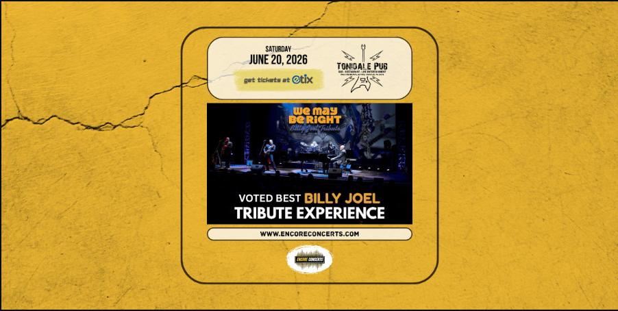 The Tonidale Pub and Encore Concerts proudly present We May Be Right - Billy Joel Tribute - live in concert on Saturday, June 20, 2026. Doors open at 6:30 PM and the show starts at 8:00 PM. Advance tickets are available now at Etix.com or via the link on this listing. Any remaining tickets will be available for purchase at the door on the day of the show, beginning at the time of entry. Cash and most electronic forms of payment are accepted at this venue. Seating is available on a first-come, first-served basis beginning at the time of entry. No reservations will be accepted for this event. This event is for ages 21 and over only. Valid identification is required for entry. Free parking is available to attendees in the venue's parking lot. All sales are final. No refunds, exchanges, or transfers unless the event is canceled, postponed, or rescheduled.