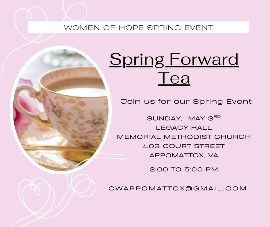 Join us for an afternoon of fellowship, music, and renewal at our Spring Forward Tea.
