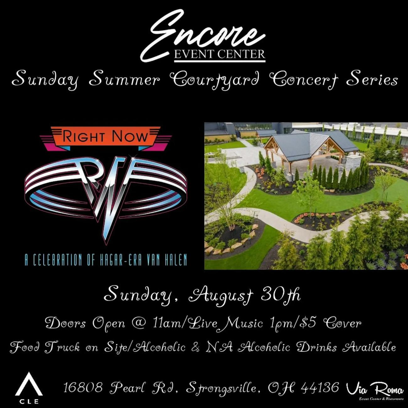 Join us at the Encore Event Center on August 30, 2026 at 1:00 PM (EDT) for an awesome Sunday Funday! Catch the Van Halen Tribute band rocking out live in the courtyard. It’s the perfect way to kick back, enjoy some great tunes, and soak up the good vibes. Don’t miss out on this fun in-person event – see you there!