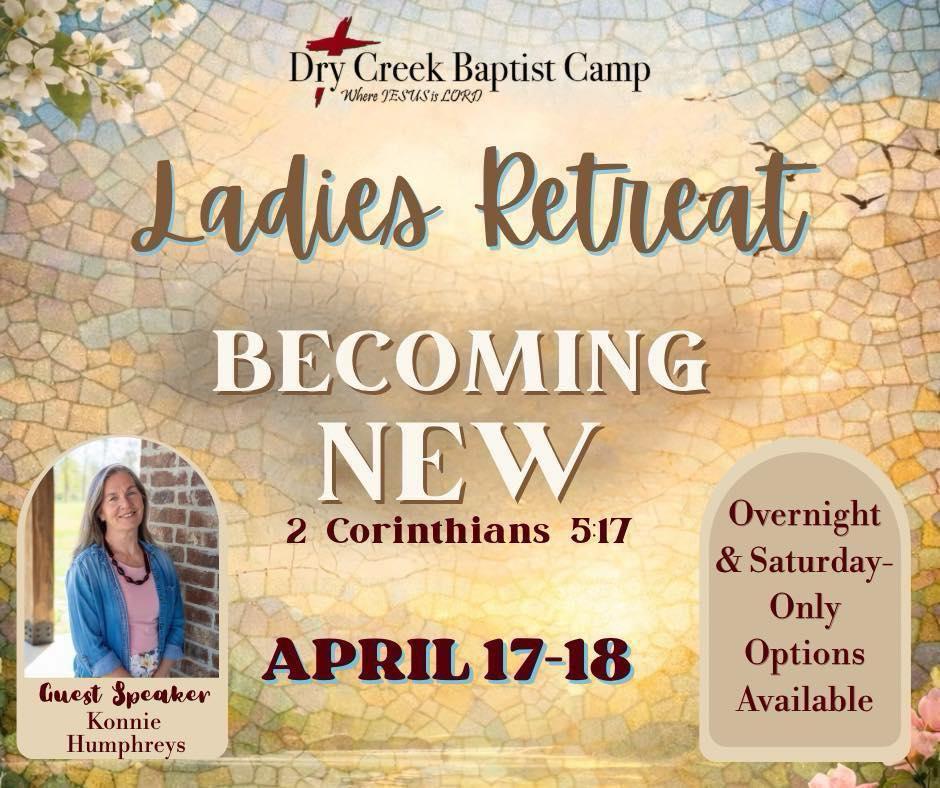 Take time to refresh, renew, and reconnect at this beautiful Ladies Retreat hosted by Dry Creek Baptist Camp 💖