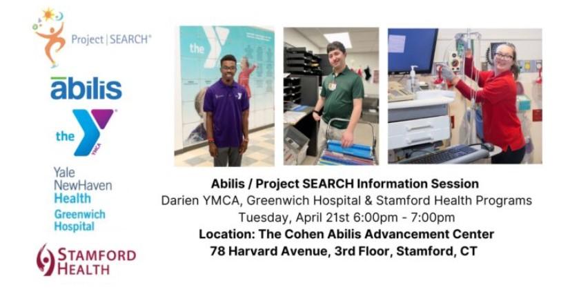Join us for a Abilis/Project SEARCH Information Session on Tuesday, April 21st, from 6pm-7pm at The Cohen Abilis Advancement Center, 78 Harvard Avenue, 3rd Floor, Stamford, CT. Project SEARCH is a nine-month program providing internship experiences for young adults with developmental disabilities and preparing them for competitive employment.